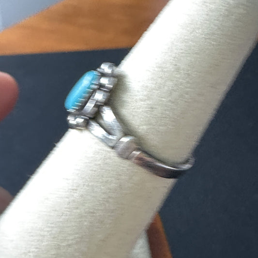 Vintage Native American Navajo 925 Sterling Silver Blue Turquoise Ring Size 5.5