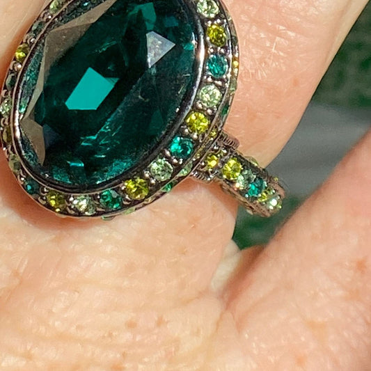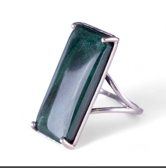 DJoy Sterling Silver Large 8 Ct Malachite Ring Size 9