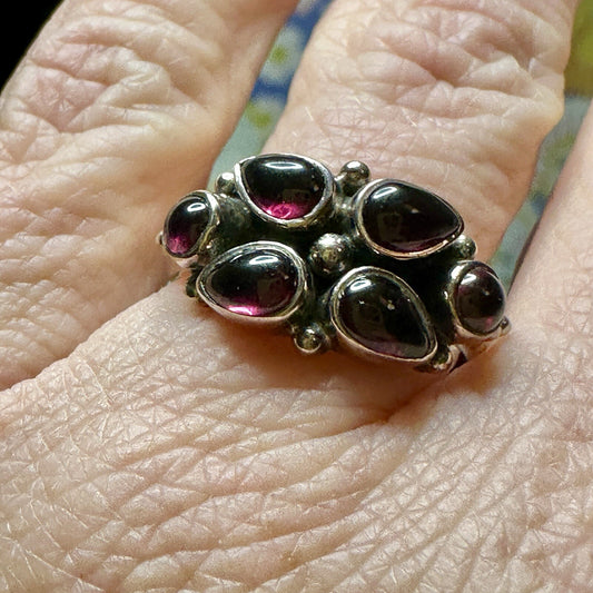 Garnet Cabachon Sterling Silver Ring Size 10 5.55 G