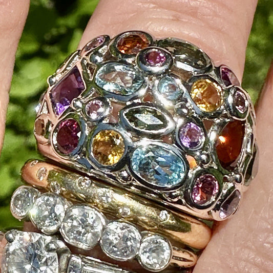 Vintage 14k Dome Multi bezel Gemstone Ring Size 8/ 10.31 g