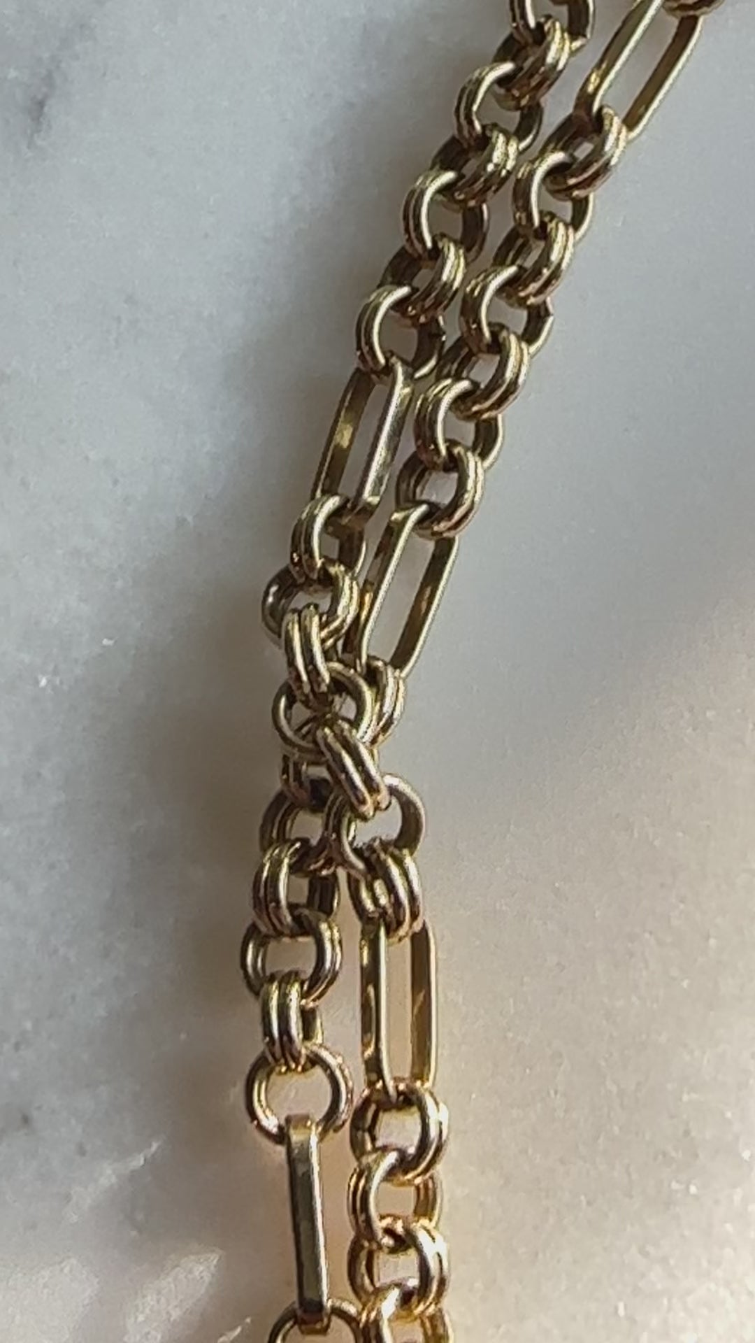 Originally popular during the late Victorian and Edwardian eras, the bar-and-rolo style was favored for watch chains and guard chains, admired for both durability and visual appeal. This chain captures that timeless antique character, blending history with everyday wearability.