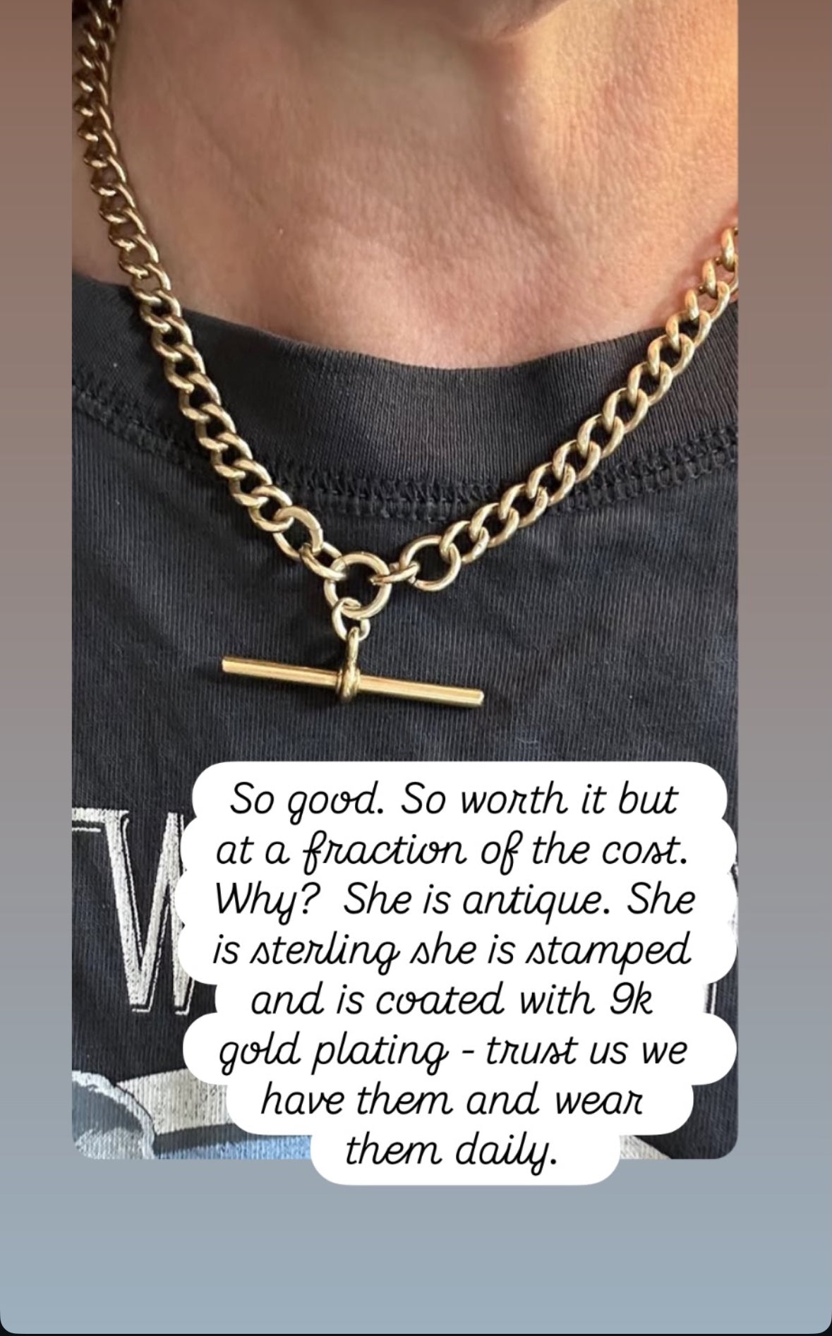 amazing antique curb link 9k hard gold plated over antique sterling silver - 16.6 " long