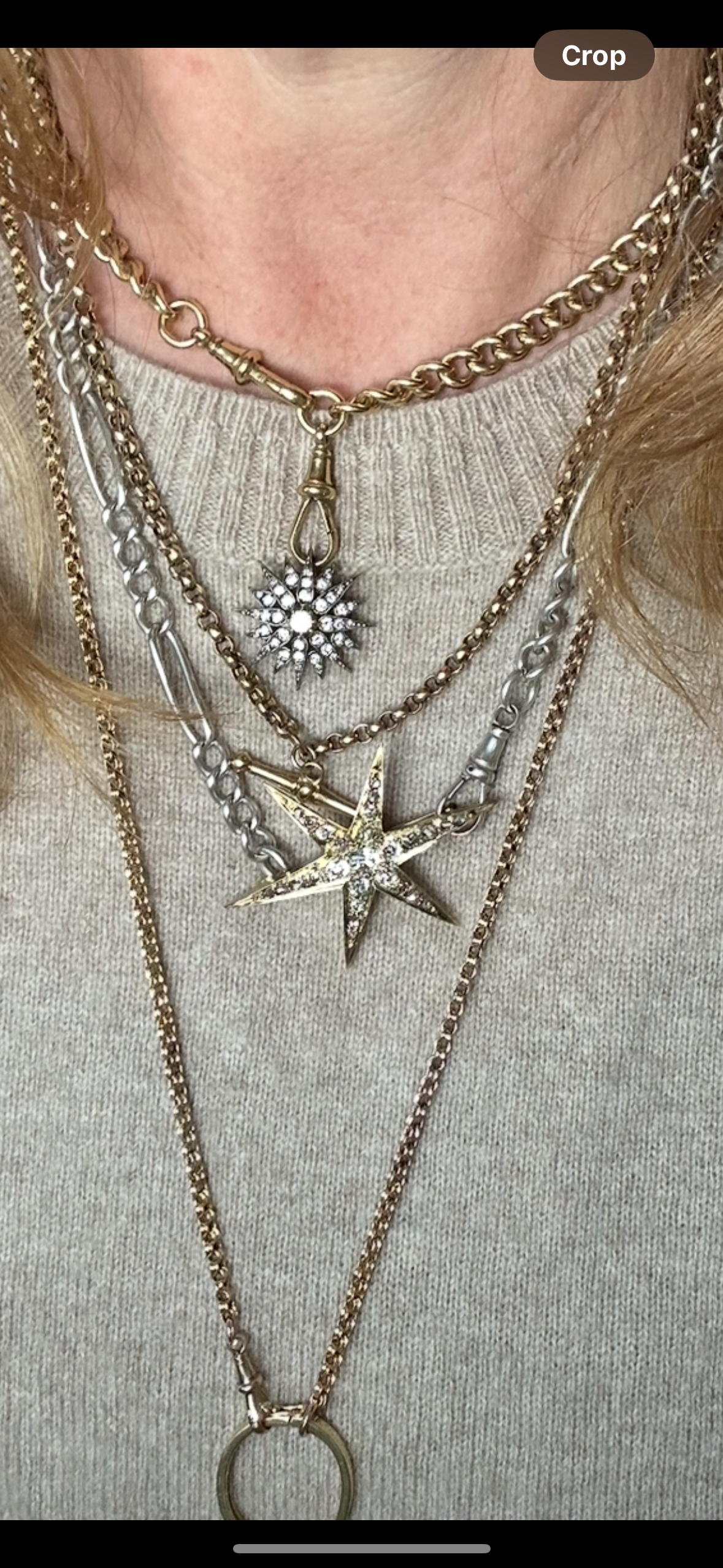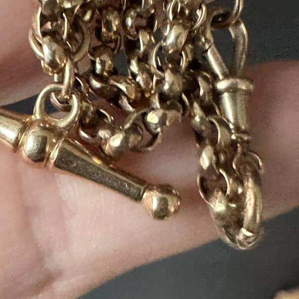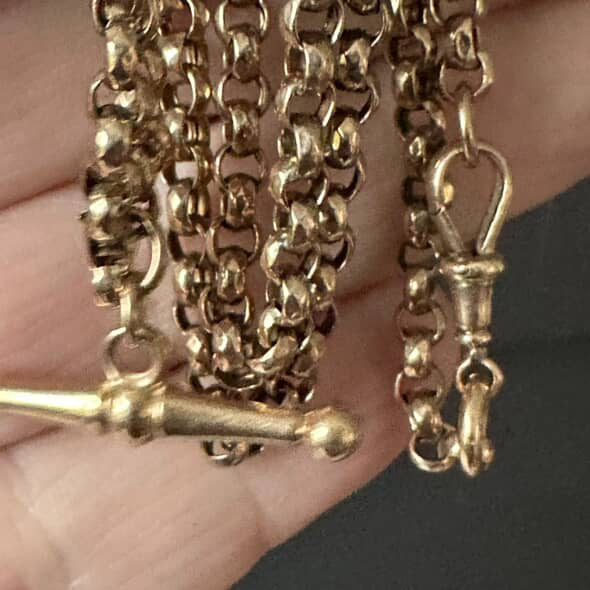 Antique 9ct yellow gold Rolo chain with TBar and dog clip