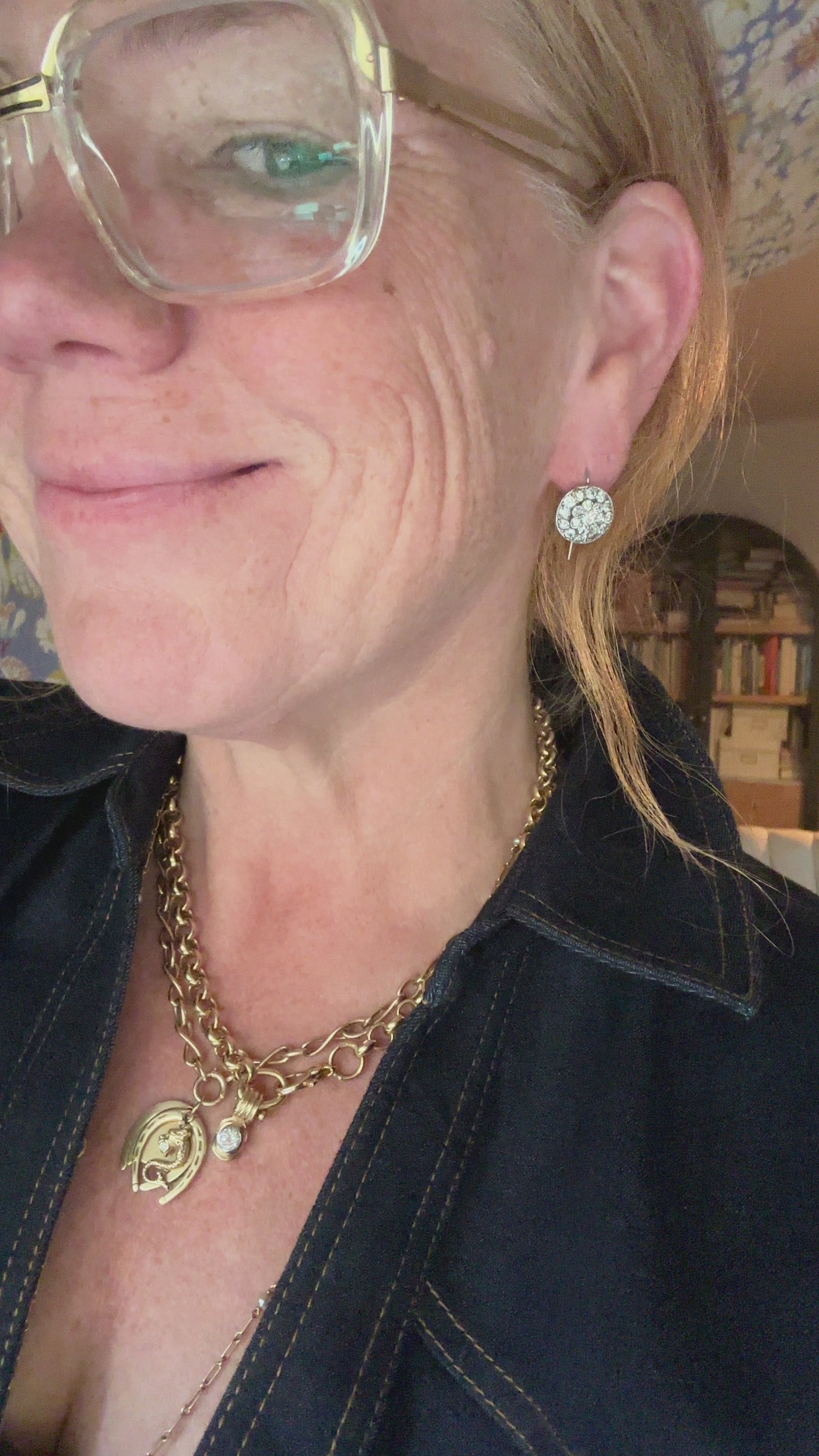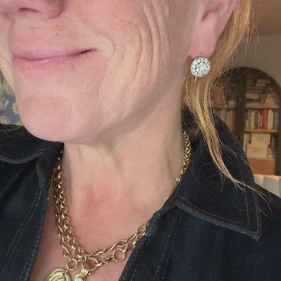a cluster design, featuring old European-cut and old mine-cut diamonds weighing approximately 3.15 carats, measures 5/8