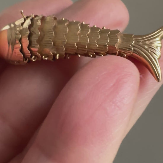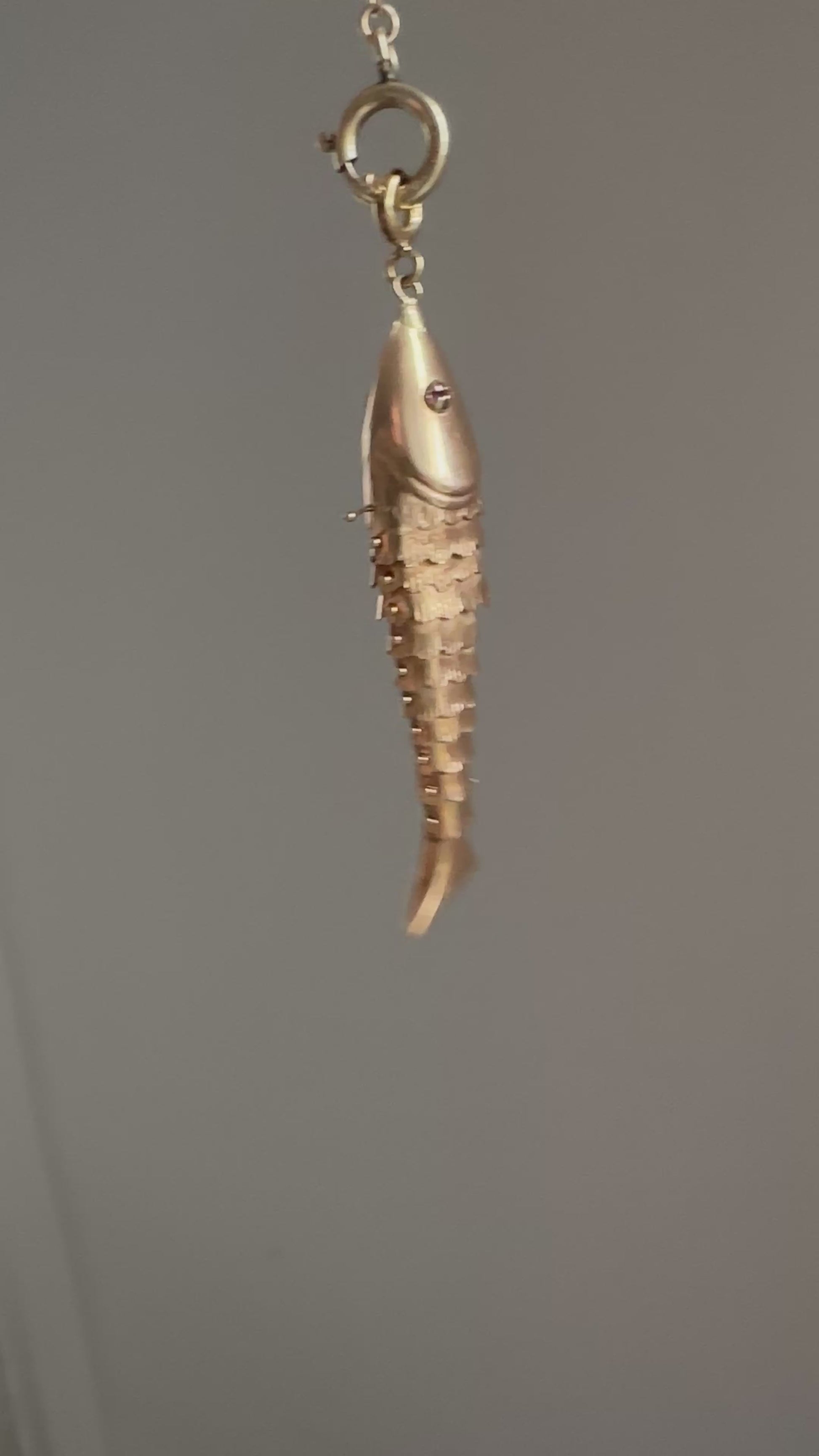 Solid 14K articulated fish charm