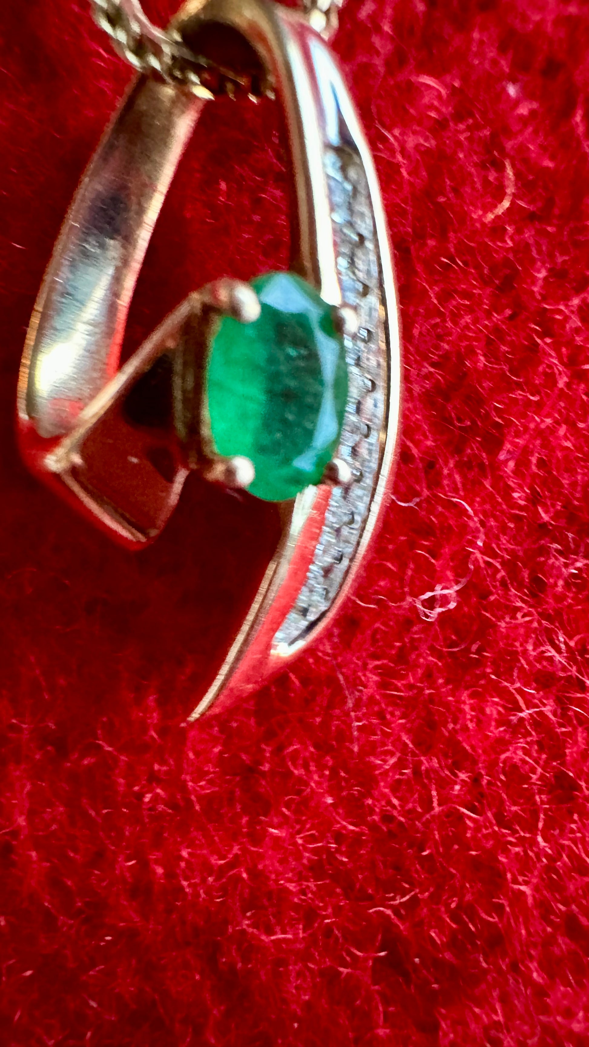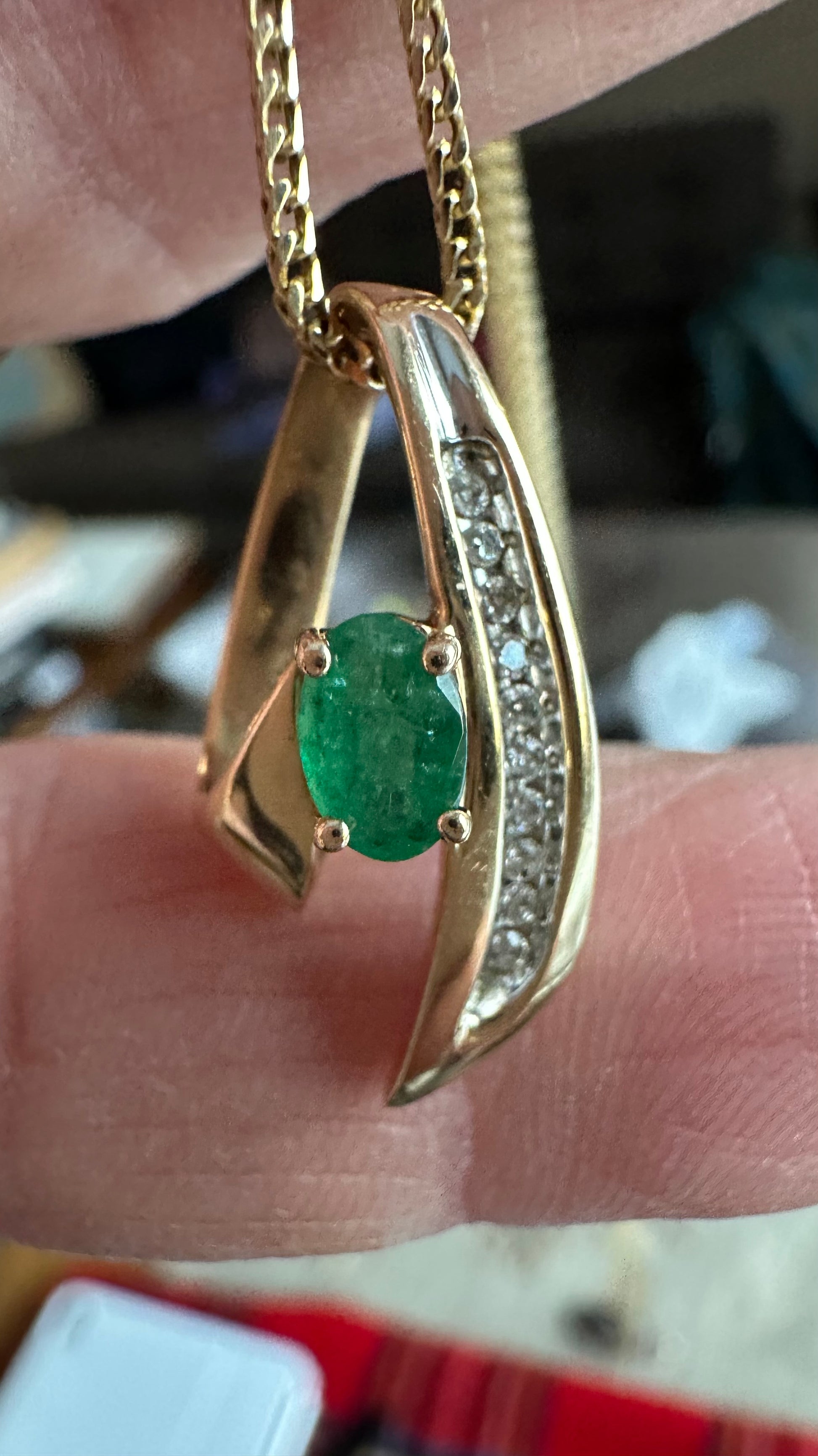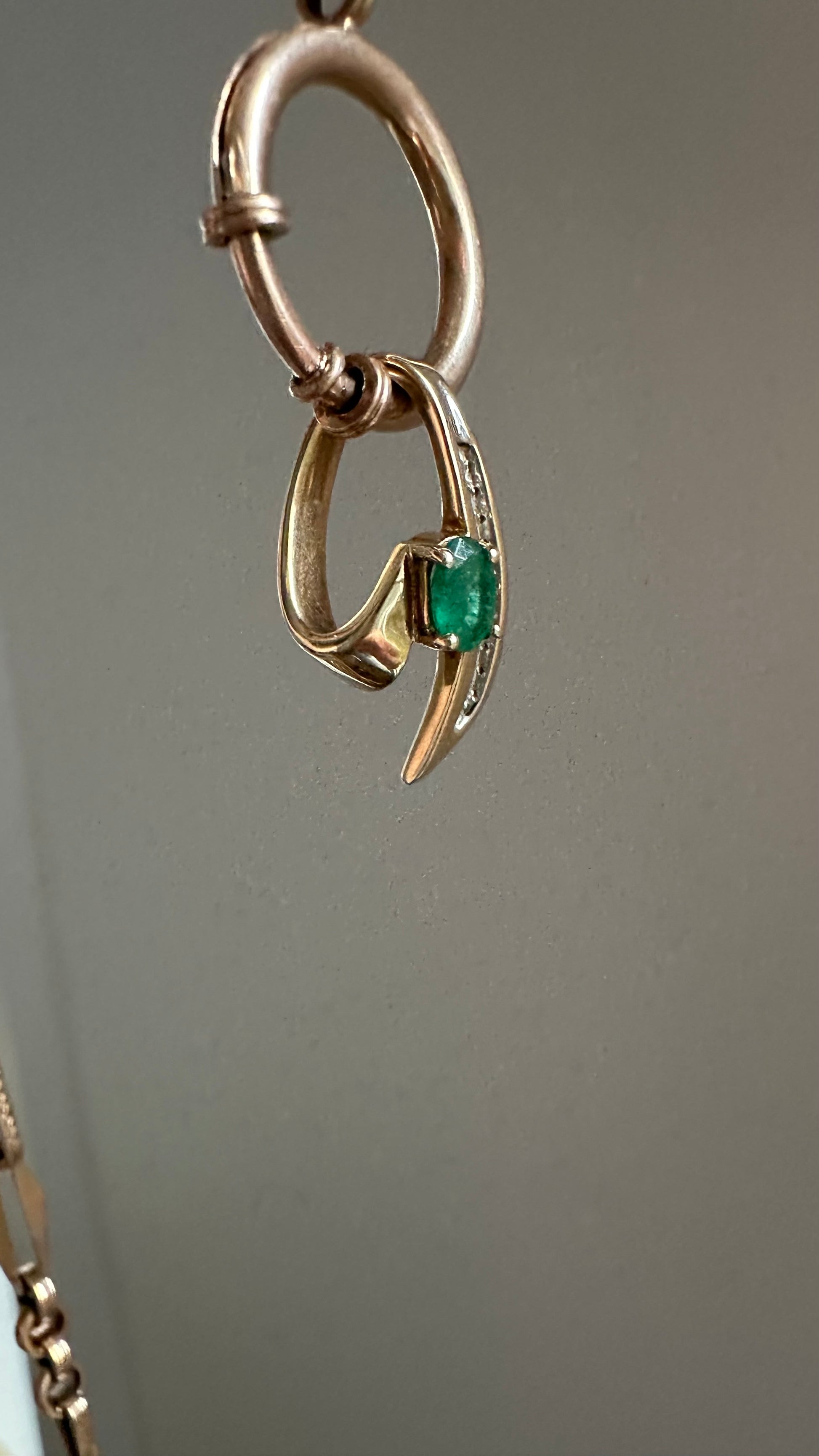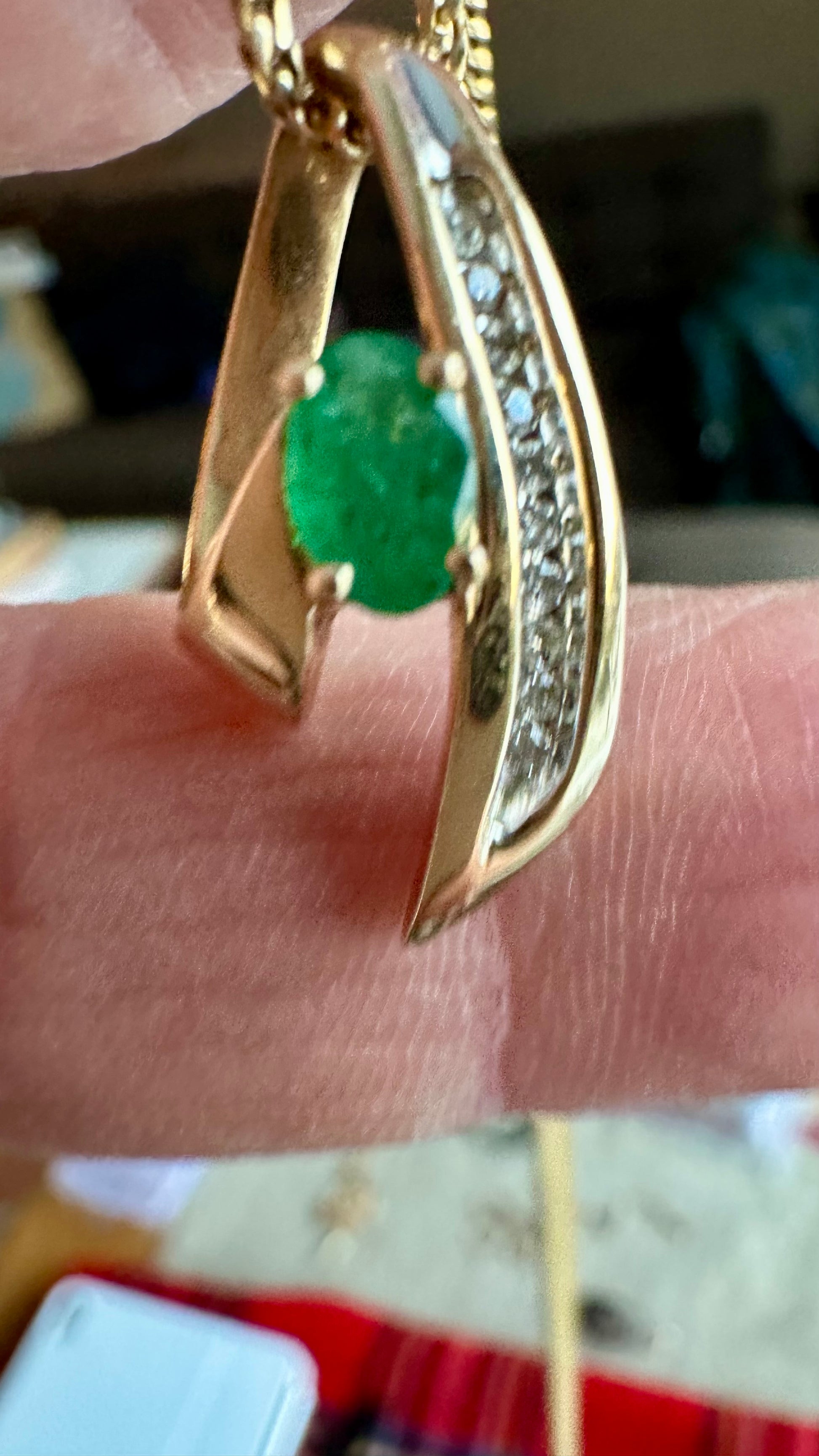 Vintage 14 karat gold emerald, and diamond pendant necklace