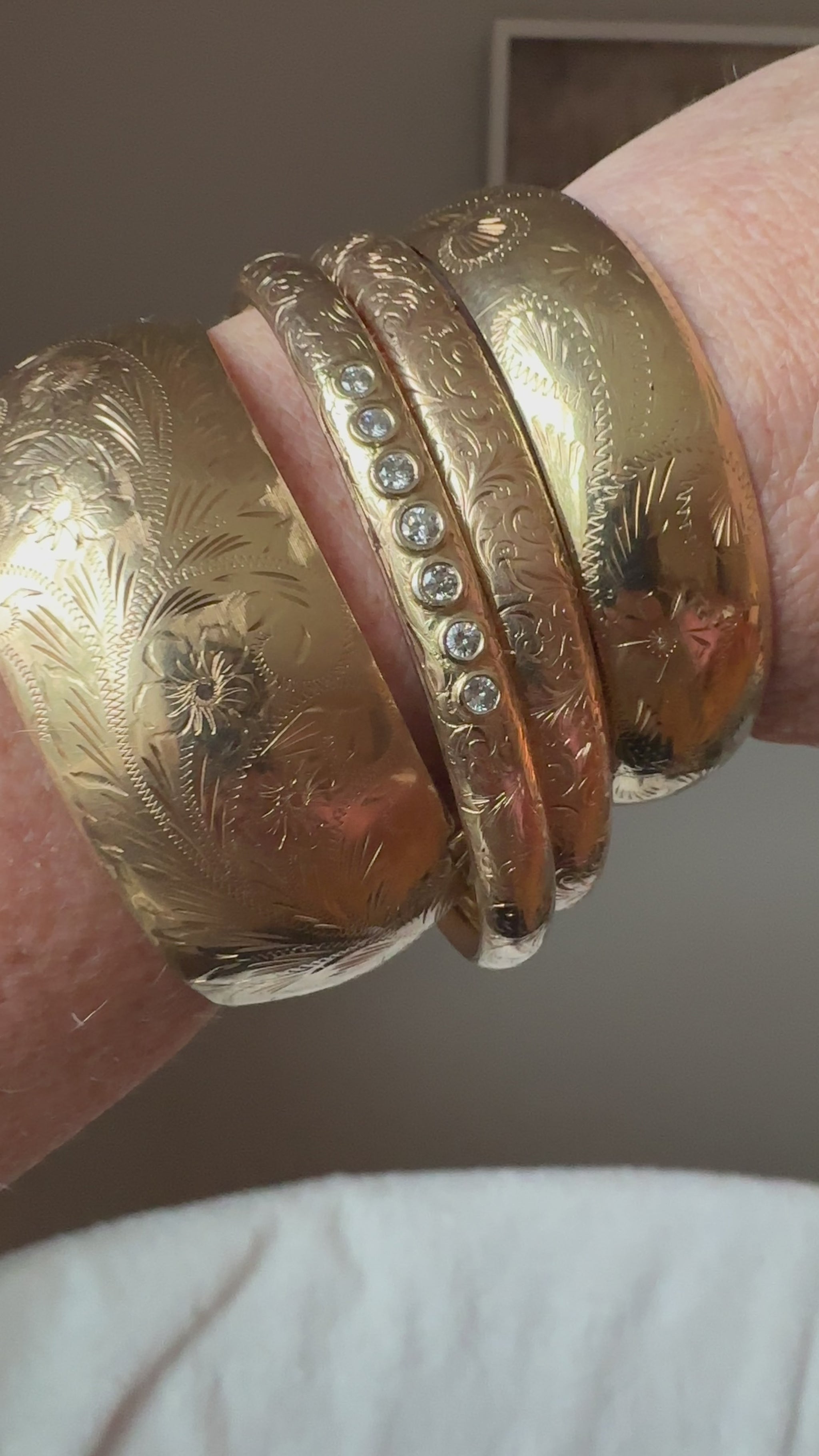 Vintage Rine 14k gold etched hinged bangle 22.3 g