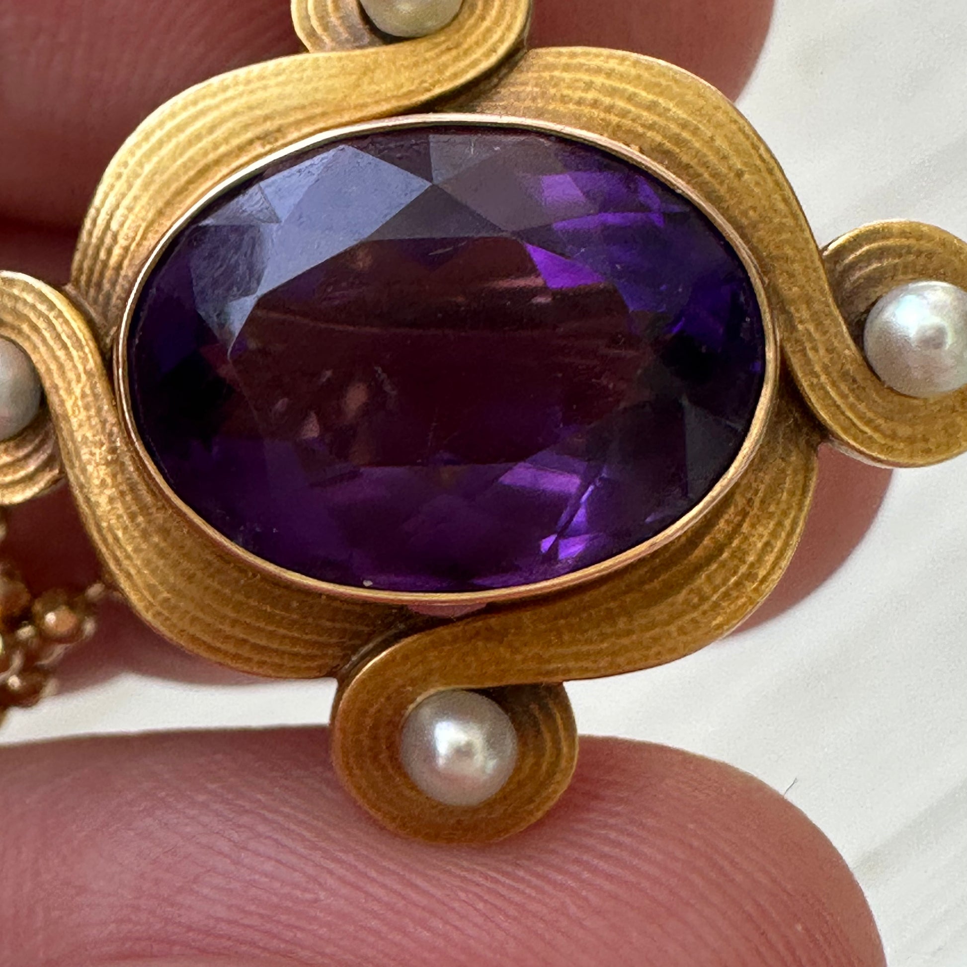 Whiteside and Blank 14k Gold Amethyst And Pearl Brooch Art Nouveau ( chain not included )